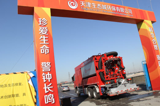 本次施工改變了傳統的由清掃車清掃作業、灑水車高壓沖洗、多種洗消設備聯合作業的施工模式,由一臺抽吸車即可完成,對污染物的清除率達到現場的環保施工要求。相對于傳統的作業方式,全密閉、無拋灑、地表清洗干凈,工作效率提升5倍以上。