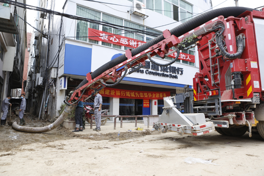 2016年7月10日超強(qiáng)臺風(fēng)“尼伯特”登錄福建后,閩清地區(qū)受災(zāi)嚴(yán)重。海山機(jī)械緊急攜帶非破壞挖掘機(jī)抽吸車和步履工作平臺,和武警官兵一起對災(zāi)區(qū)的淤泥、垃圾、污染物、報廢車輛等進(jìn)行清理,為災(zāi)區(qū)群眾快速恢復(fù)生產(chǎn)、重建家園提供了有力援助,得到了軍地各級領(lǐng)導(dǎo)的肯定和災(zāi)區(qū)群眾的贊譽(yù)。