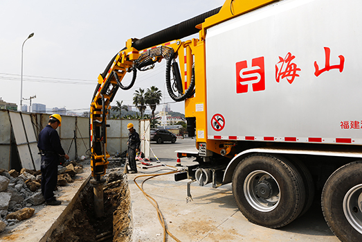 ?莆田市八二一街與幸福路交匯的一處建筑工地的非破壞性管線挖掘,此次施工使用海山機械的非破壞性挖掘抽吸車,安全、高效地完成了埋有多種管線的地下管道工程開挖。