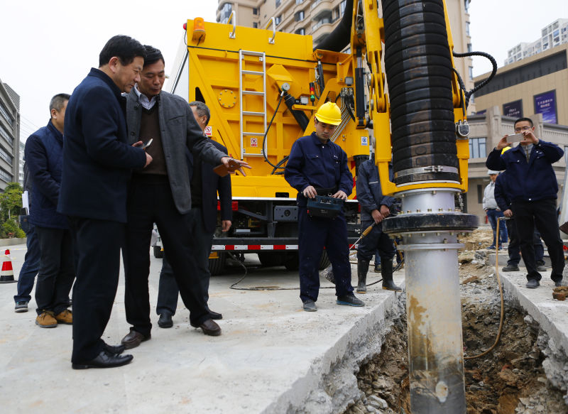 General Manager Huang Xiangyang said to experts and the participants who were observing the non-destructive excavation that, at present China and Europe and the United States have regulations strictly prohibiting the use of excavators, shovels and other destructive excavation equipment in dangerous sites like the pipeline and underground cable. Today we are at this site to witness the use of Hishan’s and our country’s first non-destructive excavator to excavate pipelines buried underground. The whole process is called soft digging operation, which means applying super suction force created by patented Hishan turbines to remove soil, gravel and other materials around the pipelines without causing any damages. The value of this non-contact excavation method is obviousand should be greatly promoted in China’s underground pipeline construction.
